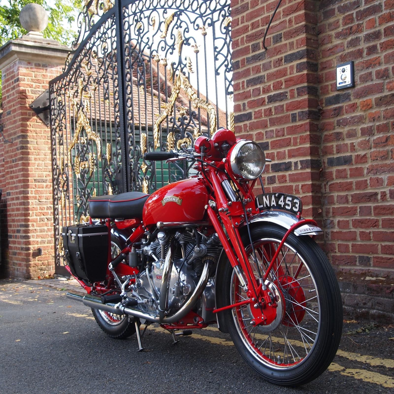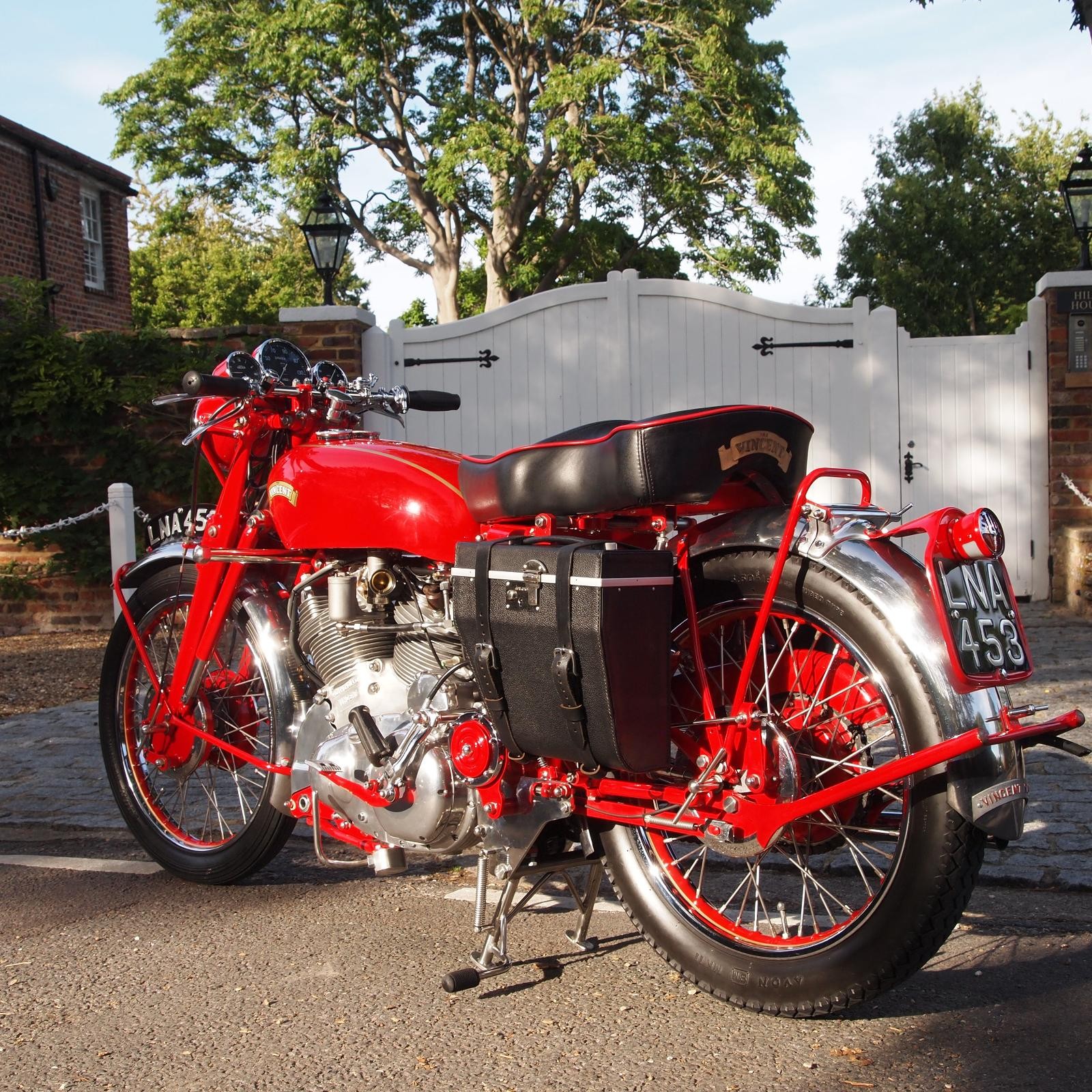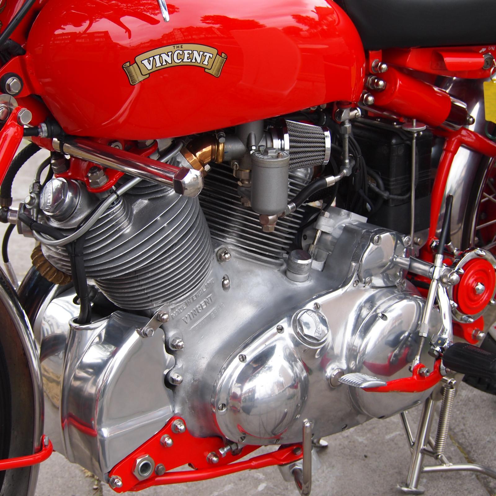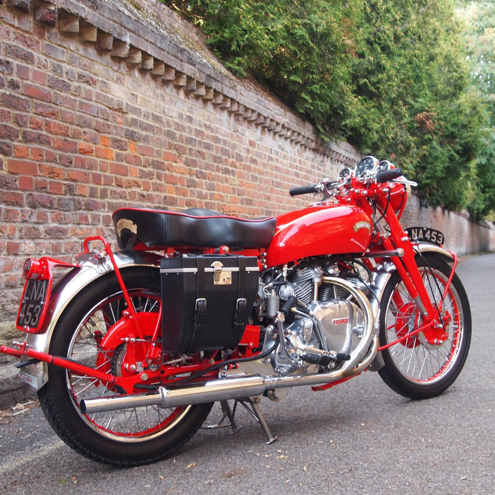 Vincent Rapide 1000cc in Chinese Red, Engine & Frame Numbers correctly 1900 apart with Club Dating Certificate; Buff Card Log Book from 1957; beautifully hand made period style luggage fitted, Rev Counter, Black Shadow Speedometer; really stunning machine and a proper 'eye full' in red.