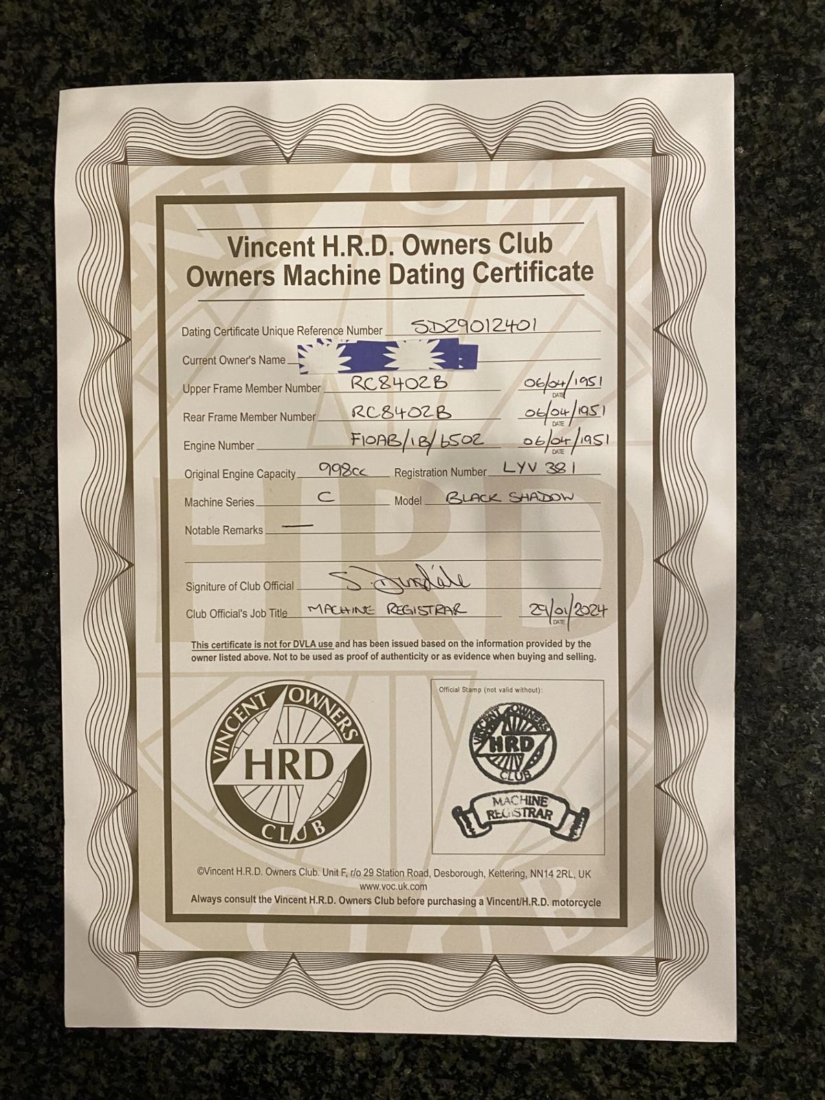 Please note: This Vincent is 100% a VINCENT BLACK SHADOW and not a
