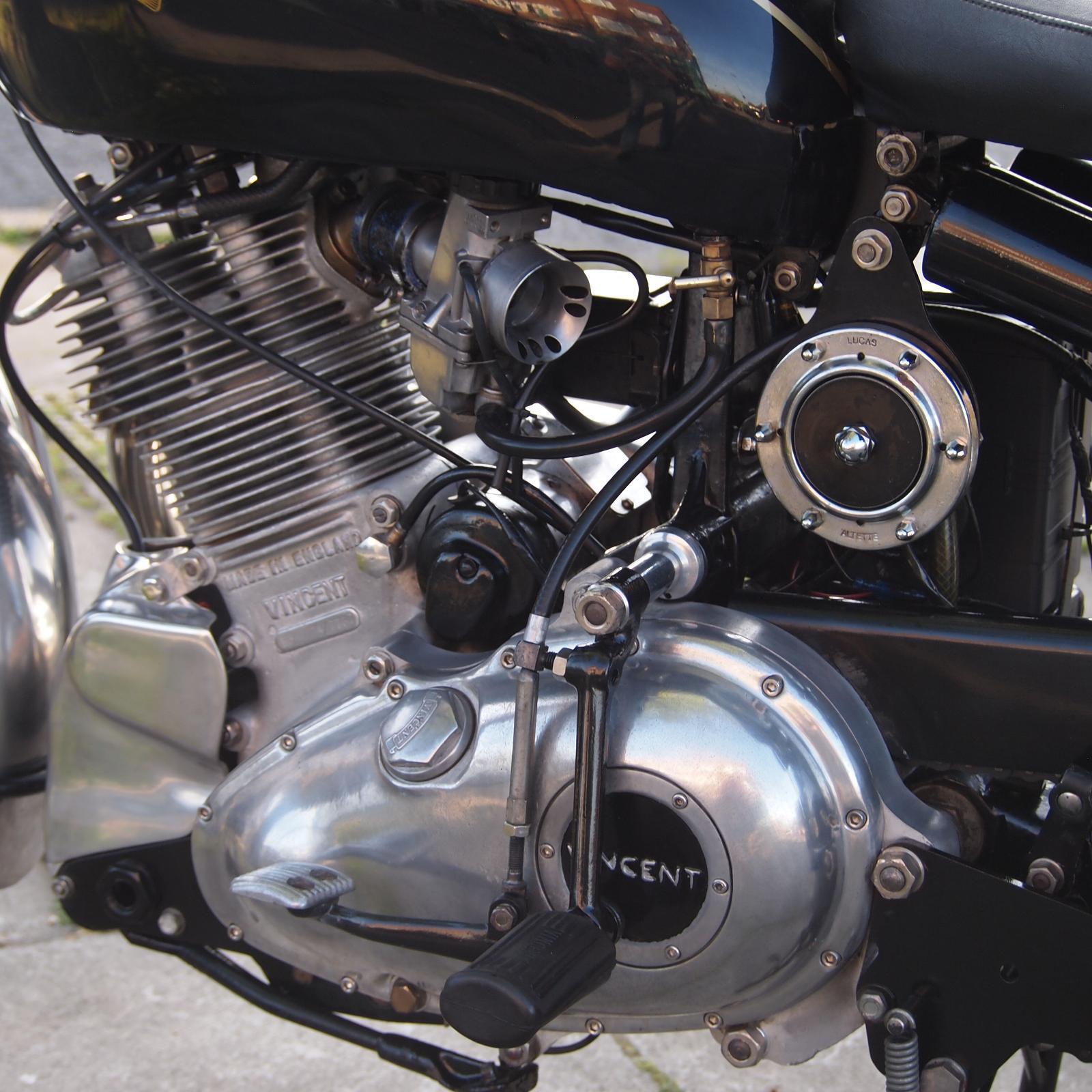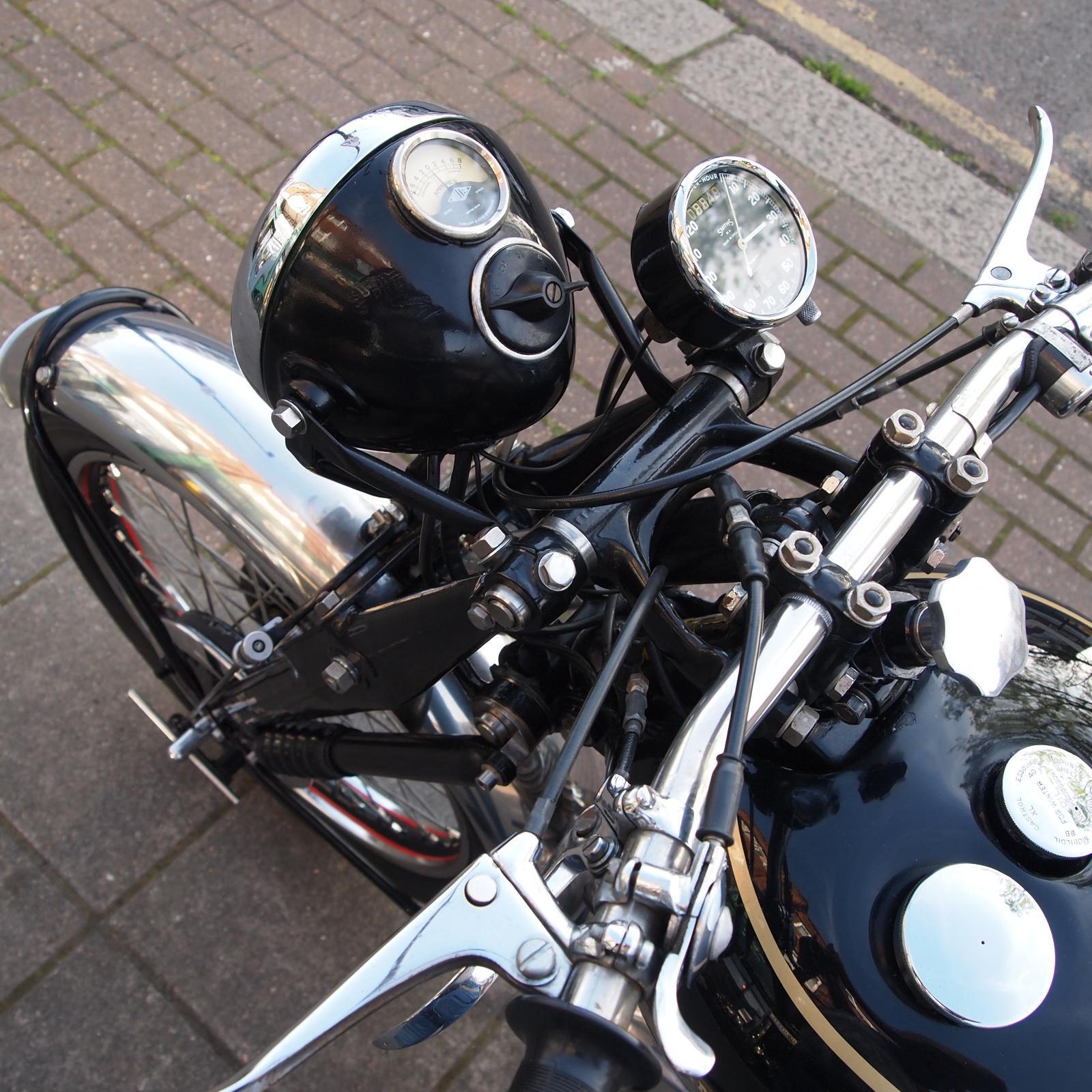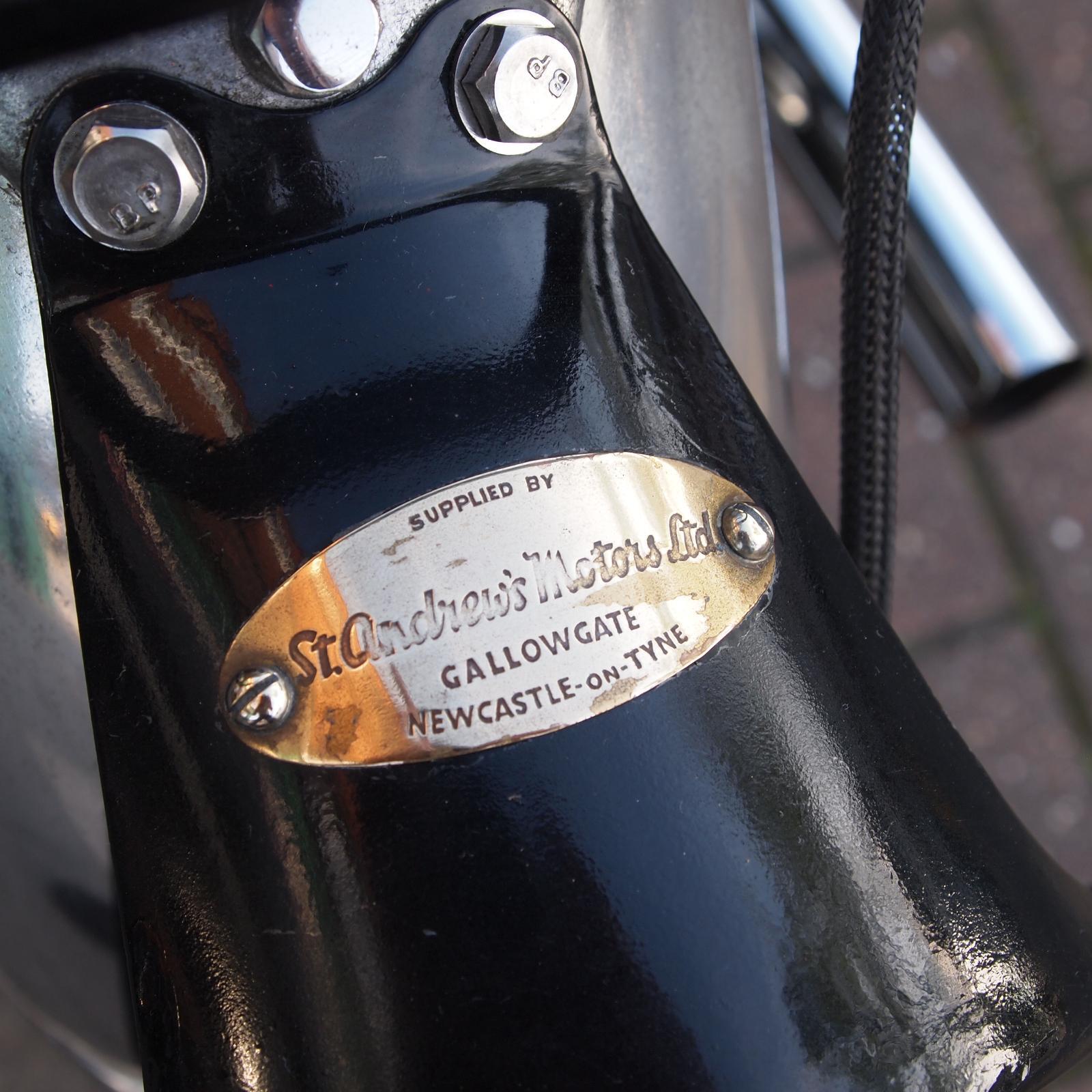 The Vincent Comet still carries supplier's brass logo plate indicating supply by St Andrews Motors of Gallowgate, Newcastle