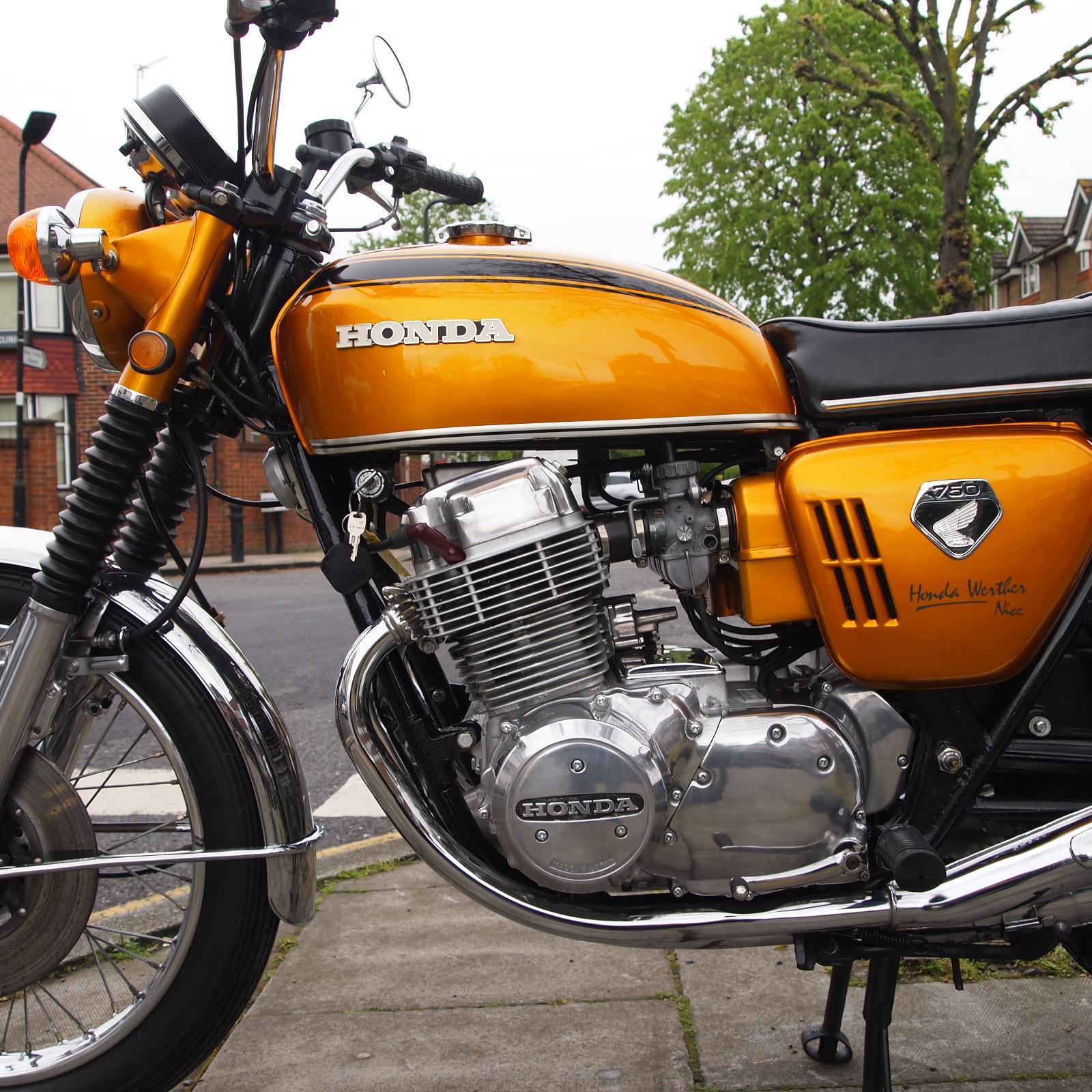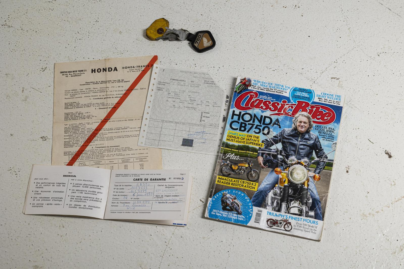This early Honda CB750 was purchased by James May in August 2013 from marque specialist David Silver, who had sourced it from France, and was the subject of an article written by James for Classic Bike magazine (Why a Honda CB750 Will Make You Happy, October 2013 edition, copy on file).
