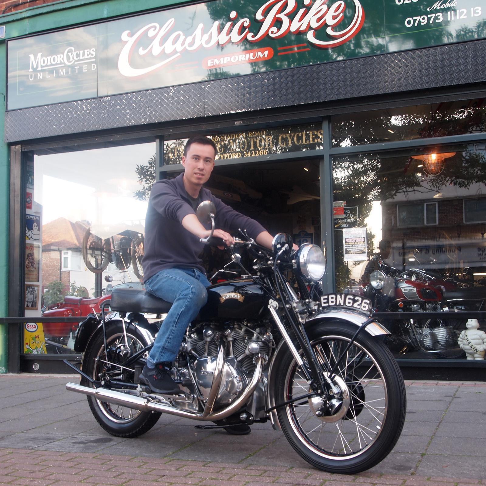 The Vincent story began with Phil Vincents purchase of the HRD name in 1928, initially producing bikes using proprietary engines in his own chassis. Always the innovator by the mid-30s he had developed his own 500cc single and 1000cc twin-cylinder designs that survived until the companies closure in 1955. The big vee twin was the fastest motorcycle in the world at the time and with some astute marketing become the bike everyone aspired to own. The Rapide and Black Shadow range have become some of the most desirable and iconic bikes of the era.